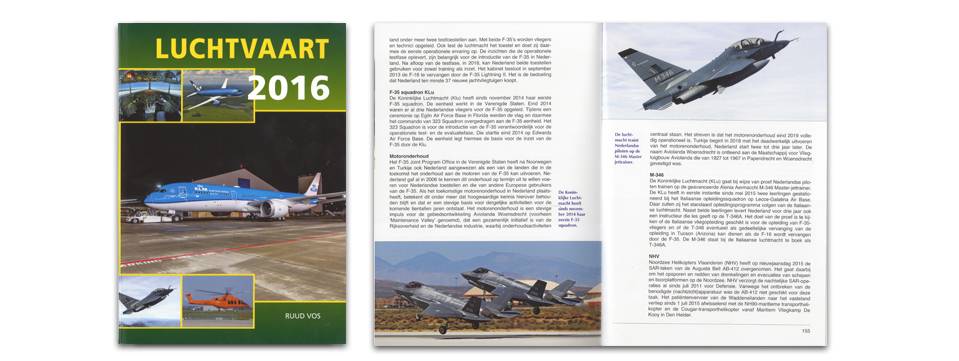 ‘Luchtvaart 2016’ met ISBN 9789059611641 is geschreven door Ruud Vos en uitgegeven door Uitgeverij De Alk in Alkmaar. De softback op formaat 15 x 21 cm telt 176 pagina’s en ruim 182 kleurenfoto’s. Het boek kost € 17,90. Kijk voor meer informatie op www.alk.nl of bel 072 5113965.
