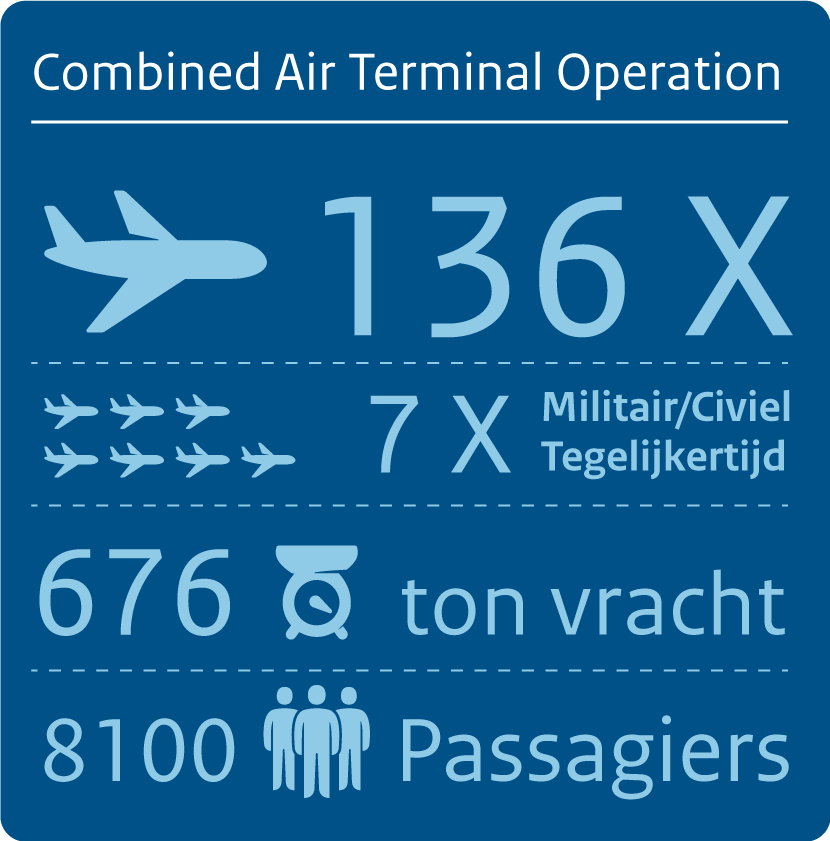 Duizenden militairen en honderdduizenden kilo’s vracht vliegen via het speciaal voor de oefening opgezette cargo- en passagiersafhandelingspunt Spanje in en uit. Het multinationale Combined Air Terminal Operation (CATO), zoals het afhandelingspunt officieel heet, is gehuisvest in een hangaar en diverse tenten op de Spaanse vliegbasis Zaragoza. Tot wel 75 militairen uit 9 landen runnen de terminal. Onder hen 9 man van vliegbasis Eindhoven. “We merken dat onze Britse collega’s en wij op diverse fronten een voorsprong hebben”, vertelt loadplanner adjudant Meranda Scheper. Ze geeft leiding aan de Nederlandse inzet op CATO. “Wij werken namelijk al volgens de normen van de European Air Group. Die zijn hier leidend. Daarbij hebben wij meer ervaring dan de meeste andere landen met het beladen van veel verschillende vliegtuigtypen. Bovendien hebben wij een aantal specialisten op het gebied van gevaarlijke stoffen. Aan het oefendoel ‘kennisdeling’ dragen wij dus zeker ons steentje bij.”