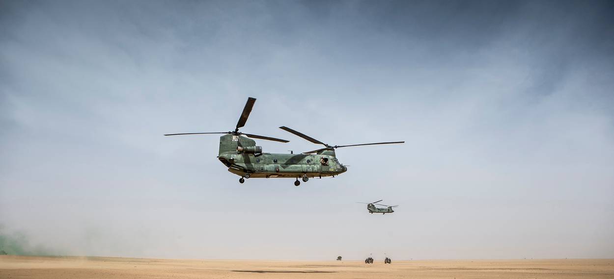 En dat bewijst de transporthelikopter ook bij de bevoorrading van Special Operation Land Task Group SOLTG-eenheden in Mali. De Nederlandse commando’s patrouilleren al een aantal dagen in Noord-Mali in de zogenoemde ‘blinde vlek’. Voor de missie Minusma verzamelen ze daar inlichtingen. Maar leven en overleven in de Sahara is onmogelijk zonder voldoende voorraden. De mannen zijn dan ook opgelucht als ze vanuit de verte het geluid van een Chinook horen.