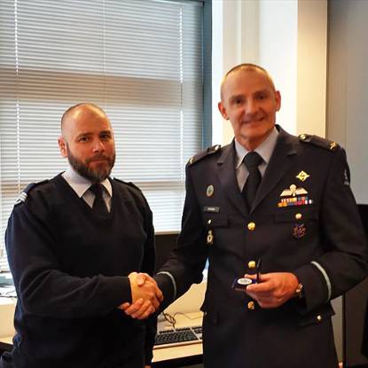Sergeant 1 René Schriks ontving op 24 februari de pionierscoin uit handen van commodore Fred Sotthewis. Hij kreeg de dankbetuiging voor zijn voortrekkersrol in de vereenvoudiging en versnelling van het reorganisatieproces van het CLSK.