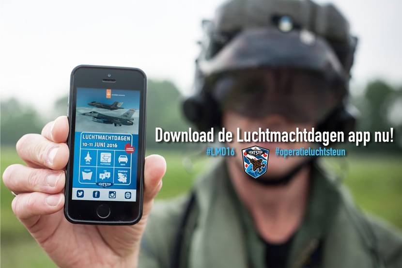 Ook tijdens de Luchtmachtdagen op de hoogte blijven van alle updates? Download dan de Luchtmachtdagen app in de Apple App Store of op Google Play.