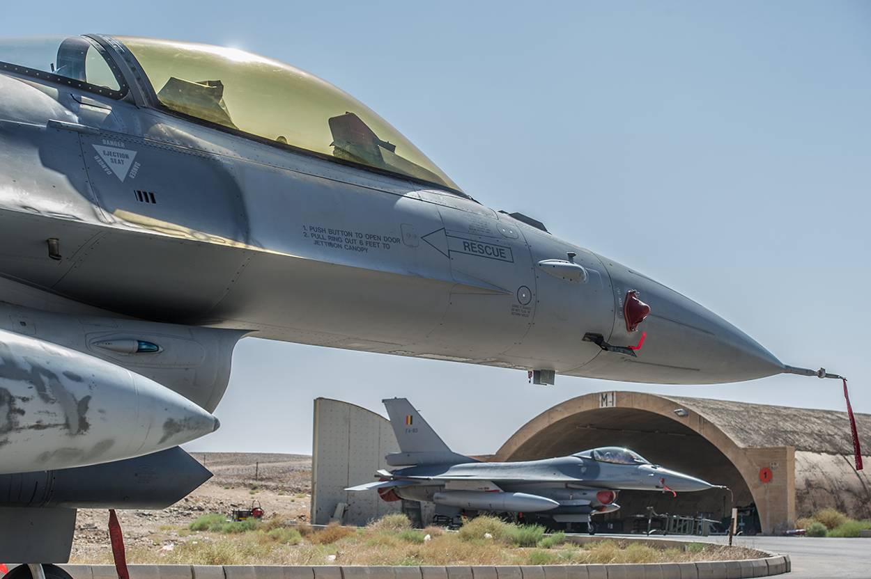 Nu de Belgen het stokje hebben overgenomen, verandert nagenoeg niets aan de missies die zij vliegen en hun operatietheater. Net als de Nederlanders tijdens de tweede helft van de missie vliegen zij met 6 kisten, waarvan 2 reserve. Het grootste verschil zit ‘m in de bewapening. De Belgen beschikken niet over de small diameter bomb. Een kleine bom waarmee doelen zeer nauwkeurig kunnen worden uitgeschakeld. Maar dat zal geen probleem vormen, verwacht de Belgische detachementscommandant: “We beschikken over genoeg andere precisiemunitie.” Foto: korporaal Ritchie Sedeyn