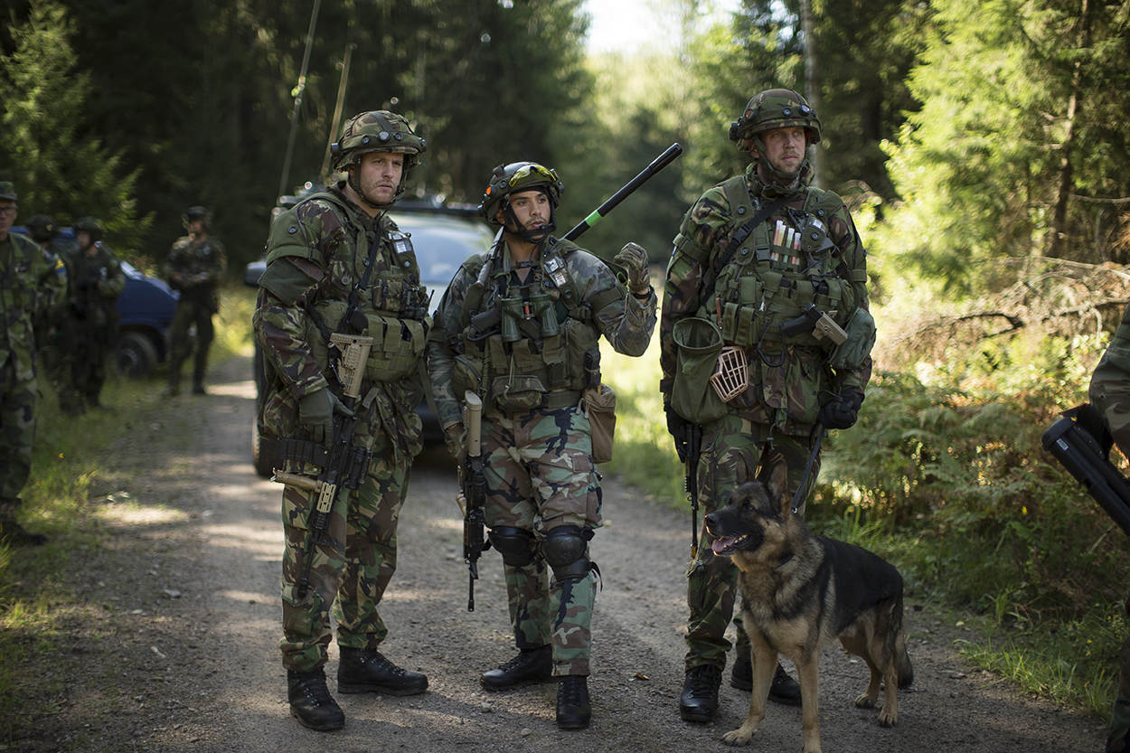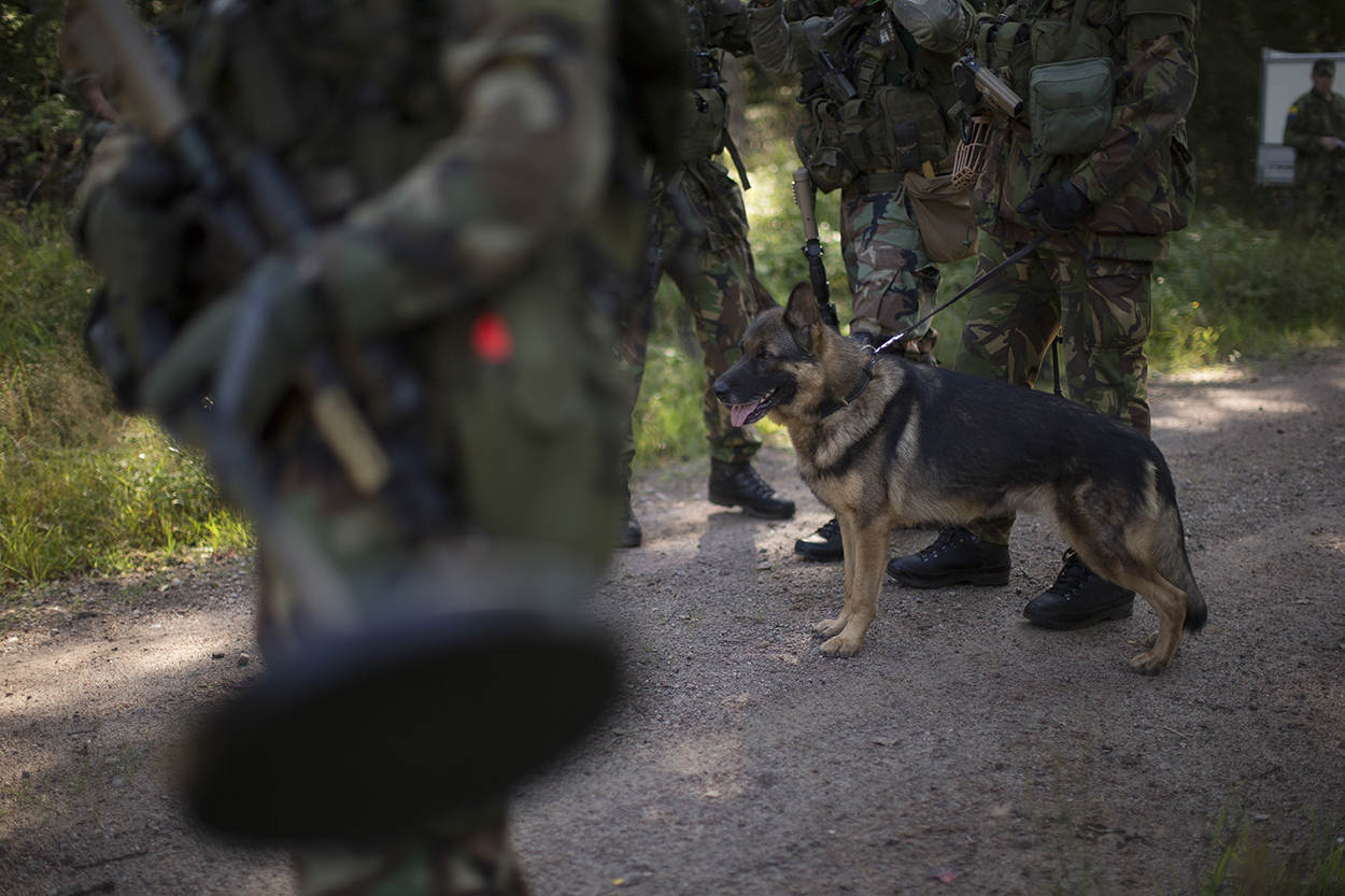 Routes searchen, grotten uitkammen en gebouwen veiligstellen; 7 honden en hun begeleiders van het CLSK reisden vorige maand 2 weken af naar het Zweedse Skillingaryd. Daar namen ze deel aan de internationale counter IED-oefening Bison Counter. Samen met ruim 60 Nederlanders en 400 militairen uit 10 andere EU-landen oefenden zij in dagelijks wisselende samenstelling op de bestrijding van geïmproviseerde explosieven (Improvised Explosive Devices, IED’s).