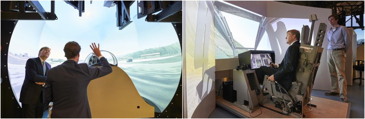Onder deze naam werken het CML, bedrijfsleven, TNO en andere kennisinstanties aan projecten gericht op het verbeteren van het menselijk functioneren in extreme omstandigheden. Na het CML bracht de koning een bezoek aan TNO waar hij een toelichting kreeg op een bewegingssimulator die desoriëntatie kan nabootsen. Hiermee worden luchtvarenden getraind. Het bezoek werd afgesloten in het Collaborative Training Centre, een simulatiehal waarin diverse ‘cockpits’ en de bewegingssimulator met elkaar zijn gekoppeld. Foto’s: Defensie