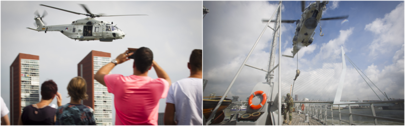 Ook dit jaar was de NH90 te zien tijdens het grootste maritieme evenement in Rotterdam, de Wereldhavendagen. Boten in allerlei soorten en maten voeren uiteraard de boventoon, maar diverse helikopters waaronder die van het Defensie Helikopter Commando konden eveneens rekenen op veel belangstelling. In 2 dagen tijd trok het evenement 380.000 bezoekers. Foto’s Evert-Jan Daniels