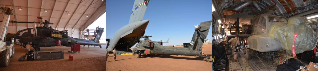 Het streven is om de overige twee Apaches voor 1 maart 2017 terug naar Nederland te vliegen. De rol van Nederland wordt dan door Duitsland overgenomen met de Duitse gevechtshelikopter, de Tigre. Foto’s: Defensie