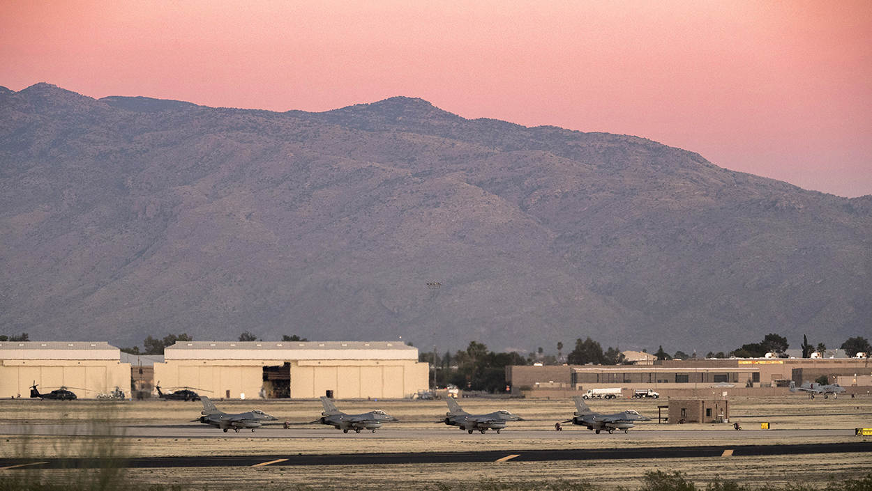 Zeker geen jaar van rust dus, want het luchtmachtpersoneel moet veel werk verzetten om weer op niveau te komen. Op Davis-Monthan (DM) Air Force Base (AFB) is 4 weken lang een klein stukje – soort van – Nederlands grondgebied. “We maken zelf de vergelijking met het kleine Gallische dorpje”, zegt de commandant BE-2 over Snow Bird. Hij doelt daarmee op de rest van de basis dat domein is van de 355th Fighter Wing. Snow Bird is de naam van het platform en bijbehorend gebouw waar vandaan bezoekende eenheden hun operaties uitvoeren. Zoals in dit geval de gemixte Nederlandse eenheid van Leeuwarden en Volkel. Maar even verderop staan Chinooks van de Royal Air Force en A-10’en uit de noordoostelijke staat Indiana.