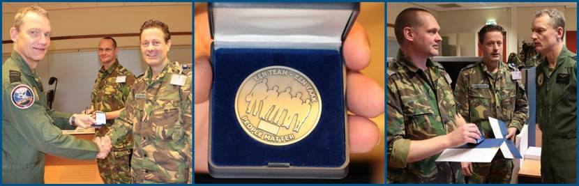 Dekker en Hoksbergen werken bij de afdeling System Control van het 970 Squadron op Air Operations Control Station Nieuw Milligen. Deze afdeling is 24/7 aanwezig om alle systemen van en voor de luchtverkeers- en gevechtsleiding draaiend te houden en in te grijpen indien zich een storing voordoet. Met de operationele systemen kan vanwege hun dagelijkse inzet niet getest worden. Dekker en Hoksbergen maakten zelfstandig met oude computers een test- en simulatieomgeving waarbij zowel soft- als hardware configuraties uitgebreid kunnen worden getest voordat het wordt ingevoerd op het operationele systeem. Een grote aanwinst dus! Mooi pionierswerk, met een zeer waardevol resultaat. Foto: KLu