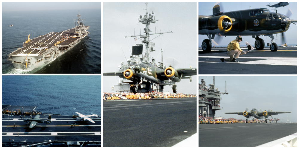 Opnieuw B-25 Mitchells aan boord van een vliegkampschip. Deze keer, op 21 april 1992 op de USS Ranger en als eerbetoon aan de 50ste verjaardag van de Doolittle Raid.
