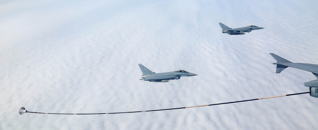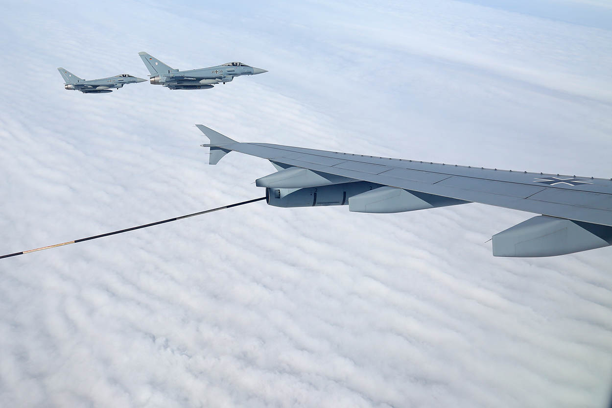 En waarom dan? Heel simpel: een tankvliegtuig is een ‘force multiplier’, een vermenigvuldigingsfactor. Round: “Door jachtvliegtuigen onderweg te laten tanken, kunnen ze met minder brandstof en juist meer wapens op weg en dubbel zo lang – of eventueel nog langer met meer tankbeurten – in het inzetgebied blijven. Want dáár zijn ze nodig.”