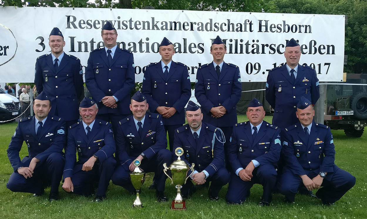 Het schietteam Woensdrecht heeft bij het 31. Internationales Militärschießen Hesborn Hochsauerland op 9 juni de eerste plaats behaald bij de internationale teams. Schutters waren Kevin van Natijne, Rick van den Berg, Thomas Schutter, Martijn de Vries, Gerko Brinks, Jaap van der Laan, Jack Den Braber, Ed Kamoen en Willem Van de Geijn en Johan Havelaar. Foto: Schietteam Woensdrecht.