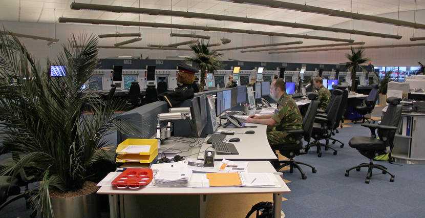Militaire supervisors in de zaal, het operatiecentrum van LVNL.