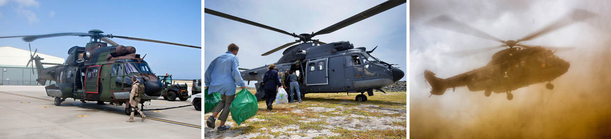 Een belangrijke nationale taak is voor de Cougar (en Chinook) weggelegd: brandbestrijding vanuit de lucht. Die ‘missie’ wordt zelfs tot in Portugal (2005) en Griekenland (2007) uitgevoerd.