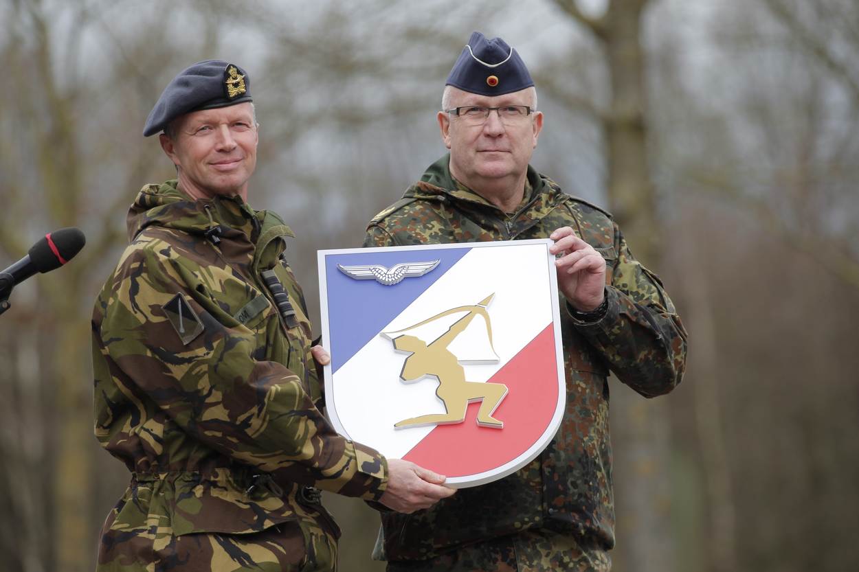 Het DGLC is de 5e eenheid die geïntegreerd samenwerkt met Duitsland. Von der Leyen sprak over het vervolg van een speciaal succesverhaal. Ook qua luchtverdediging werken Duitsland en Nederland al langer samen. Zo is sinds het najaar van 2016 al een uitzendbare Duits-Nederlandse Patriot-eenheid operationeel. Binnen het DGLC is inmiddels een binationaal kenniscentrum opgezet ter verbetering van de bestrijding van bemande en onbemande vliegende toestellen en ballistische raketten. Foto: Defensie