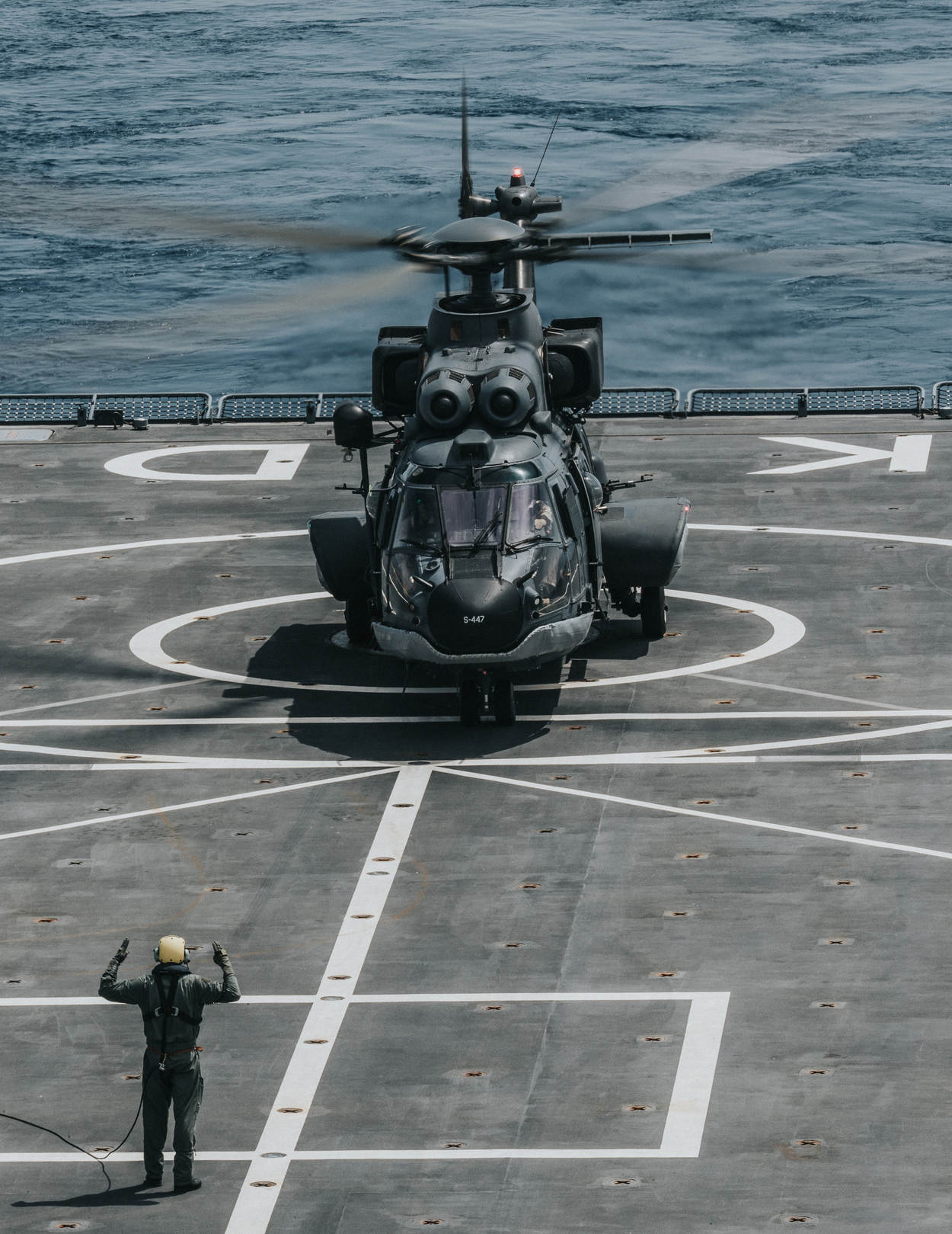 90 geplande vlieguren in 6 weken. En allemaal gingen ze zonder problemen op. De Cougar ging voor het eerst mee aan boord van het Joint Support Ship Zr. Ms. Karel Doorman. Tijdens Operation Sea Guardian op de Middellandse Zee bracht de crew van 300 Squadron gebieden op zee en de scheepvaart in kaart. De NAVO-operatie heeft als doel terrorismebestrijding en het helpen beveiligen van de Europese zuidflank.