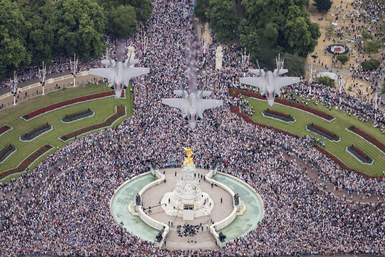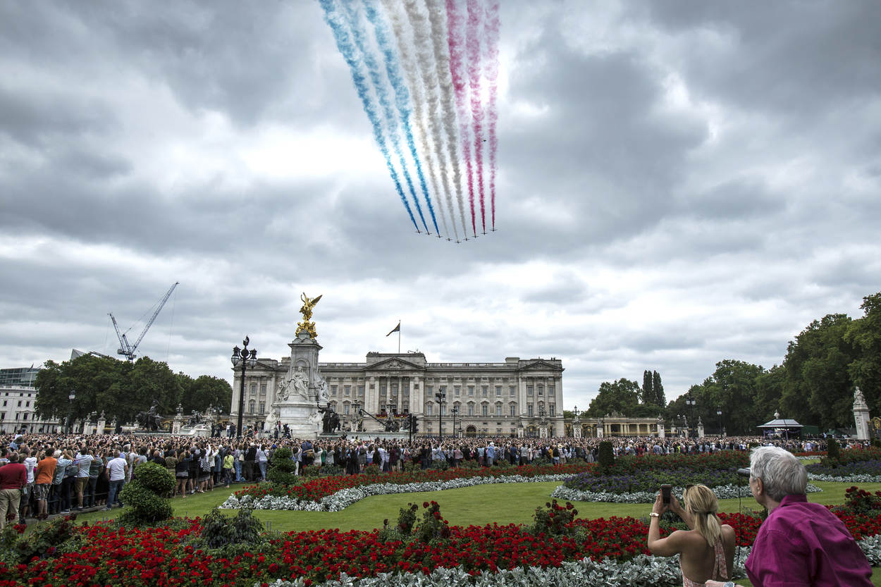 Jaarlijks toont de RAF zich bij de parade op en boven The Mall midden in Londen aan het Britse publiek. Vanwege de 100e verjaardag, uitgebeeld door 22 Eurofighter Typhoons, was de flypast afgelopen 10 juli de meest uitgebreide van de afgelopen jaren. Foto: RAF/Crown Copyright