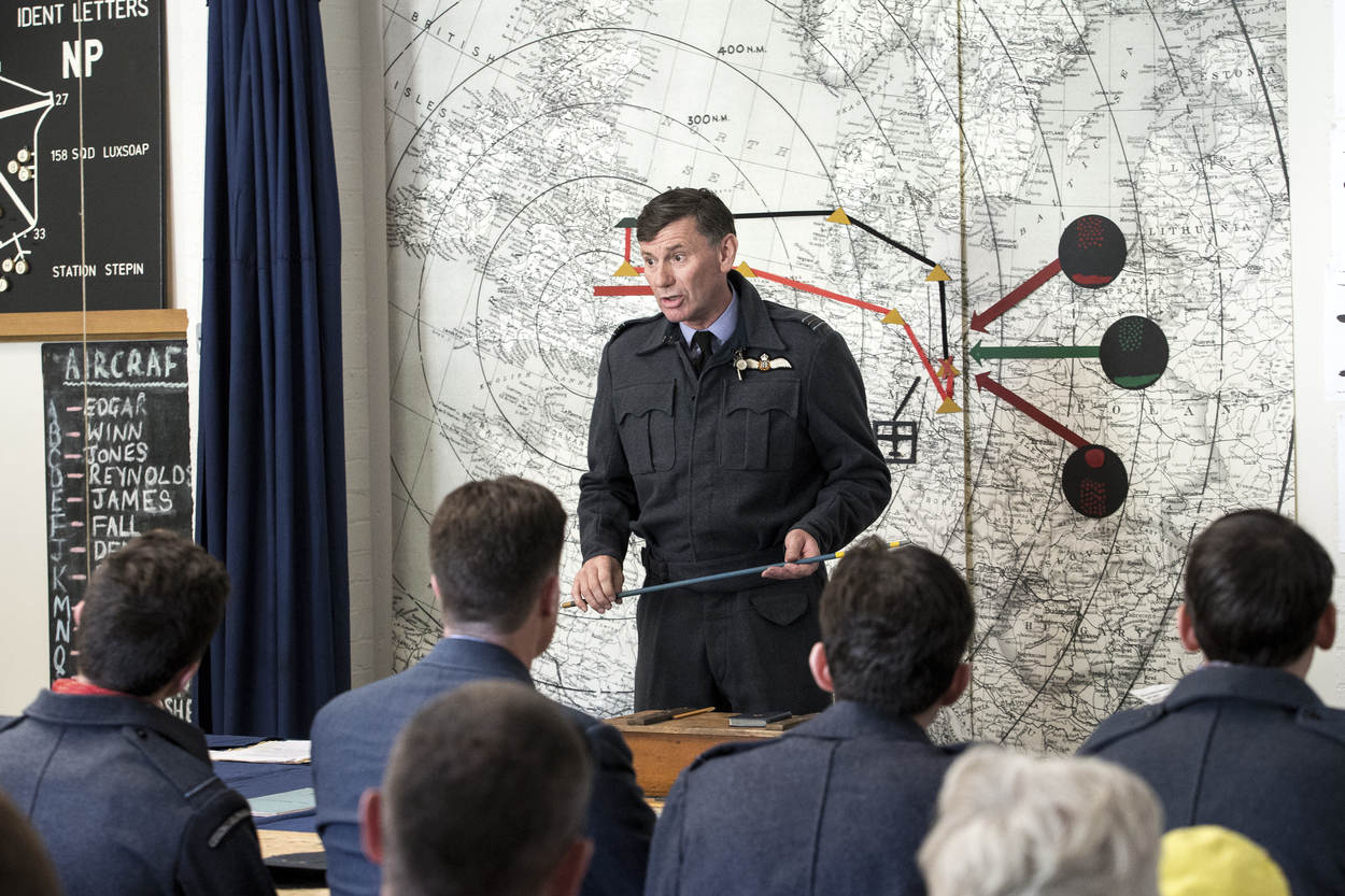 Re-enacters zorgen ervoor dat Duxford de sfeer van WOII zoveel mogelijk uitademt, onder andere bij een briefing van een oorlogsvlucht boven Nazi-Duitsland.
