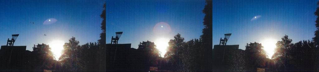 Nauwe samenwerking tussen Vliegbasis Leeuwarden, de Joint Meteorologische Groep (JMG) en het Space Security Center (SSC) heeft beging augustus geleid tot een verklaring voor een aantal raadselachtige foto’s. Op 30 juni maakte de heer Wolthekker uit Leeuwarden een aantal foto’s (boven) van een fel licht aan de hemel dat langzaam richting het noordwesten bewoog. Nader onderzoek door de JMG en het SSC wees uit dat dit geen UFO, maar een satelliet was!