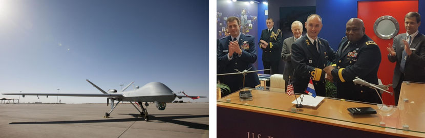 Vice-admiraal Arie Jan de Waard en Director Defense Security Cooperation Agency lieutenant-general Charles Hooper ondertekenden de zogenoemde Letter of Acceptance. De Reapers worden ingedeeld bij het 306 Squadron dat opnieuw wordt geactiveerd en gaat opereren vanaf Vliegbasis Leeuwarden. Foto’s: Defensie