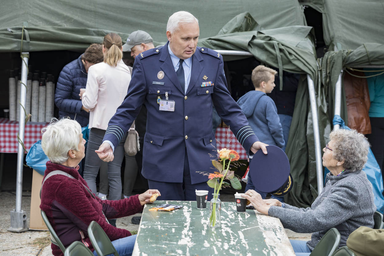 Burendag op 22 september was voor de Vliegbasis Woensdrecht een perfecte aanleiding voor een mini open dag, die eigenlijk niet zo mag heten. Maar het effect was voor de ongeveer 4.000 aanwezigen het zelfde. Een iets kleiner aantal bezoekers dan op voorhand aangemeld, waar de bij tijd en wijle neerkletterende regen aan zal hebben bijgedragen.
