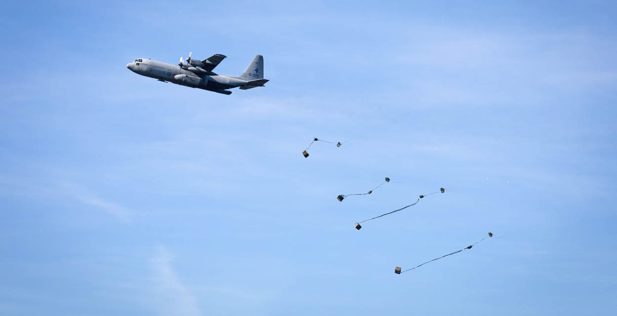 Ook de C-130’s van het 336 Squadron speelden een rol bij Falcon Autumn. Niet alleen met het droppen van para’s maar ook van vracht zoals hier op Deelen. Foto: soldaat 1 Gregory Fréni