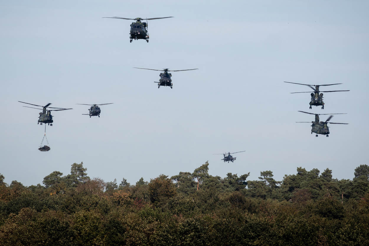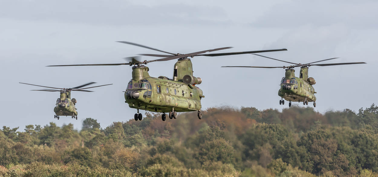 4 Chinooks vliegen mee in de oefening en 2 staan er reserve op Deelen. Bij de Apaches is dat 6 plus 2 reserve en bij de NH90’s 4 plus 4. Foto: Ludo Mennes