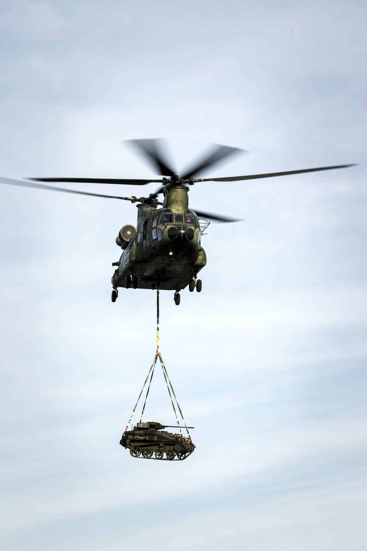 Chinook met als underslung een Duits Wiesel licht rupsvoertuig. Foto: sergeant-majoor Gerben van Es