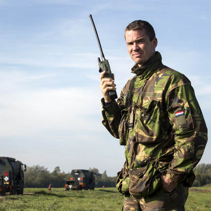 Heijn luistert aandachtig naar zijn radio. Op de een-na-laatste dag van de grootste oefening in Nederland sinds jaren, wacht hij op 3 Chinooks die komen bijtanken tijdens hun vlucht van – tijdelijke – thuisbasis Deelen naar de actie in het oefengebied Marnewaard. “Je houdt soms niet meer bij hoeveel er langskomen. Het is een constante stroom heli’s.” Nu is het langer wachten dan gepland, maar dat is Heijn inmiddels gewend: “In de praktijk loopt de planning altijd anders. Het gevecht kan alle kanten op, en daarop moeten wij continu blijven inspringen. Dat geldt ook voor het materieel. Duitse tankwagens hebben in tegenstelling tot een Nederlandse een aanhanger. In de planning moet je daarmee rekening houden, omdat die aanhangers niet elk terrein op kunnen."