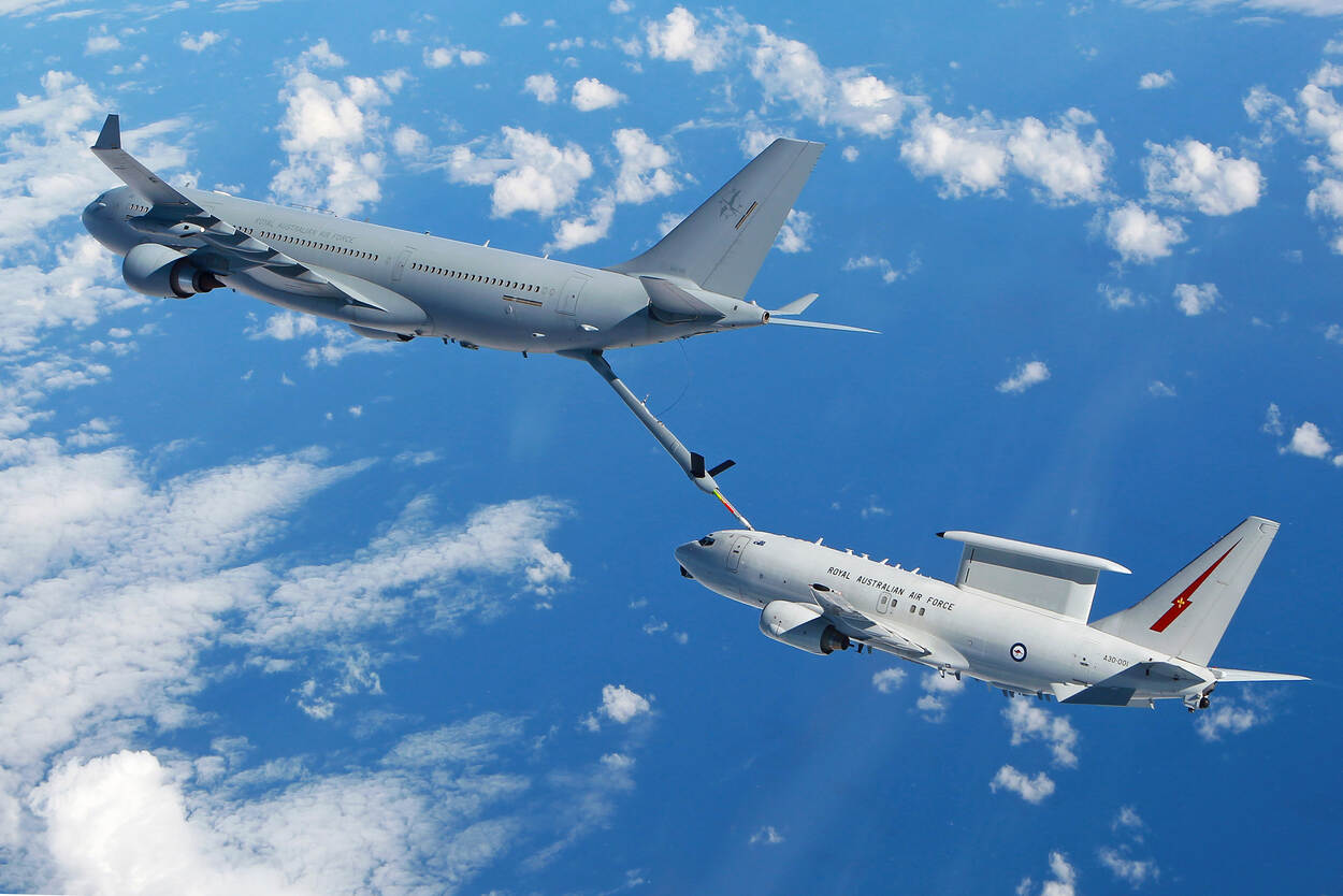 Foto boven: Australische KC-30A tankt een E-7A Wedgetail bij. Foto: Drew Abbott, RAAF