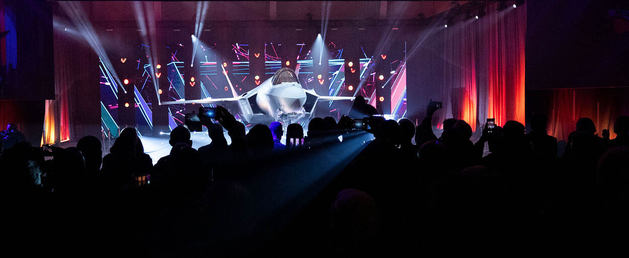 Inmiddels hangt de F-35 vlag er heel anders voor en dat was te merken in Air Force Plant 4, waarin de ruim anderhalve kilometer lange fabricagehal van de Amerikaanse vliegtuigbouwer ligt. Want naast een politieke en vooral zware militaire afvaardiging, was voor de – letterlijk – feestelijke noot ook het huidige Néderlands exportproduct nr. 1 vertegenwoordigd. Dj’s Sunnery James en Ryan Marciano luisterden het geheel op met dancemuziek waarmee zij mede de wereld hebben veroverd. Ze speelden samen met het orkest van de Koninklijke Luchtmacht.
