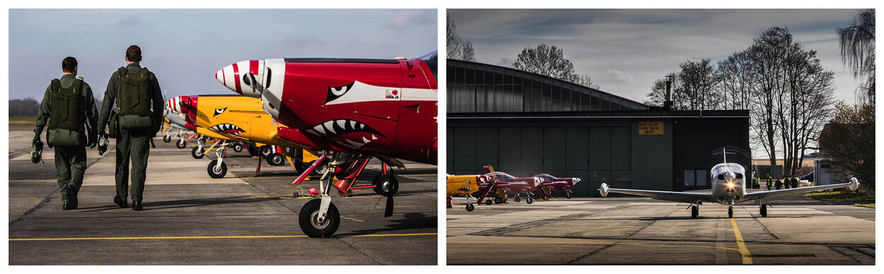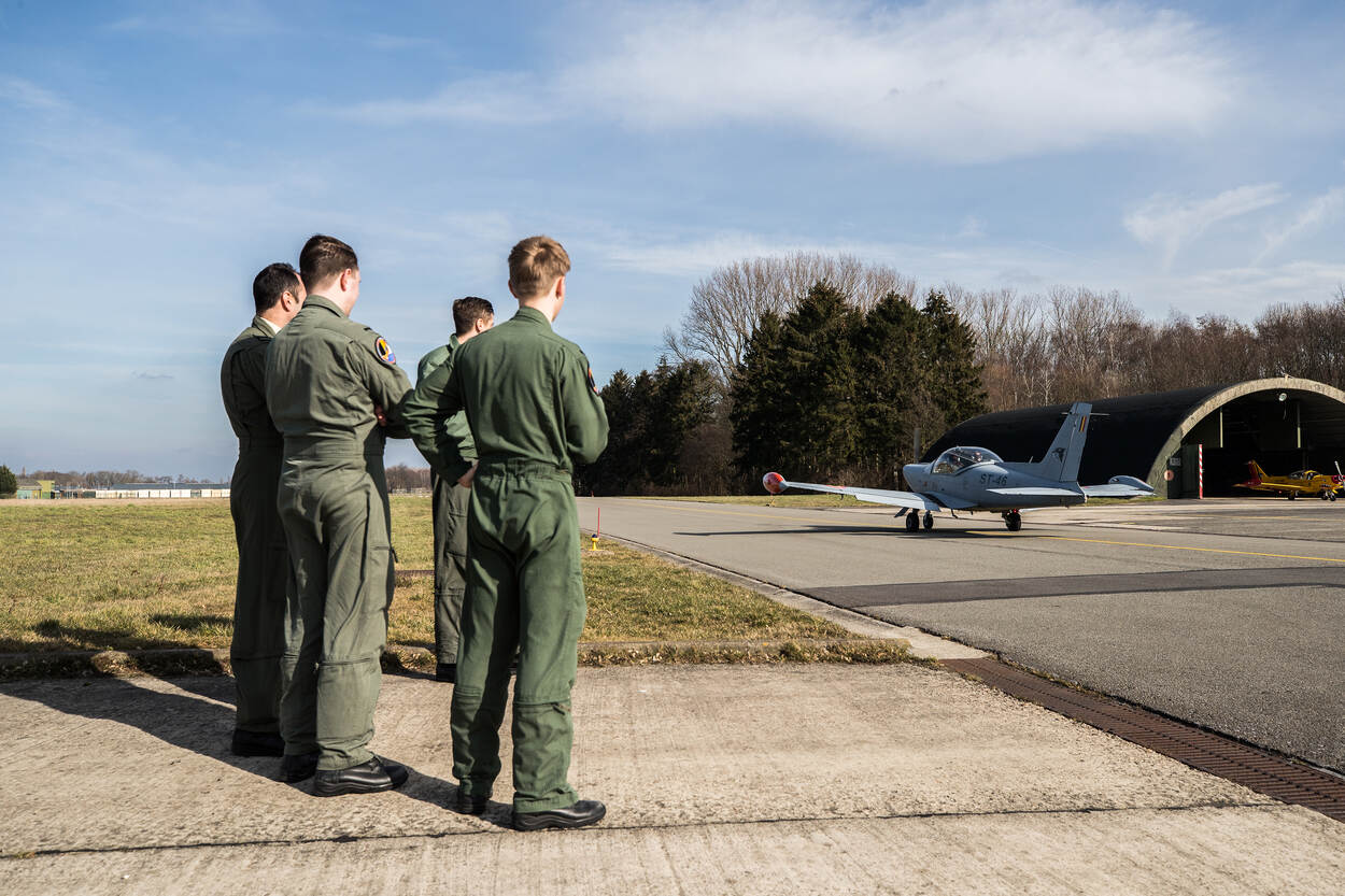België? Dat komt voor de 5 vliegers in opleiding ook als een verrassing. “We hadden de grondschool van de EMVO (Elementaire Militaire Vlieger Opleiding, red.) op vliegbasis Woensdrecht er bijna opzitten”, vertelt Arjan (22). “Toen bleek dat we daar niet konden blijven voor de initiële opleiding.” Op de vliegbasis vindt een update plaats aan de PC-7 en er zijn minder instructeurs beschikbaar. Dus maken de leerlingen in Beauvechain hun eerste vlieguren in de Marchetti. “Een half jaar naar de vliegbasis Beauvechain was voor ons even schakelen, maar als je iets zo graag wilt, maakt het eigenlijk weinig uit waar je het vak leert.”