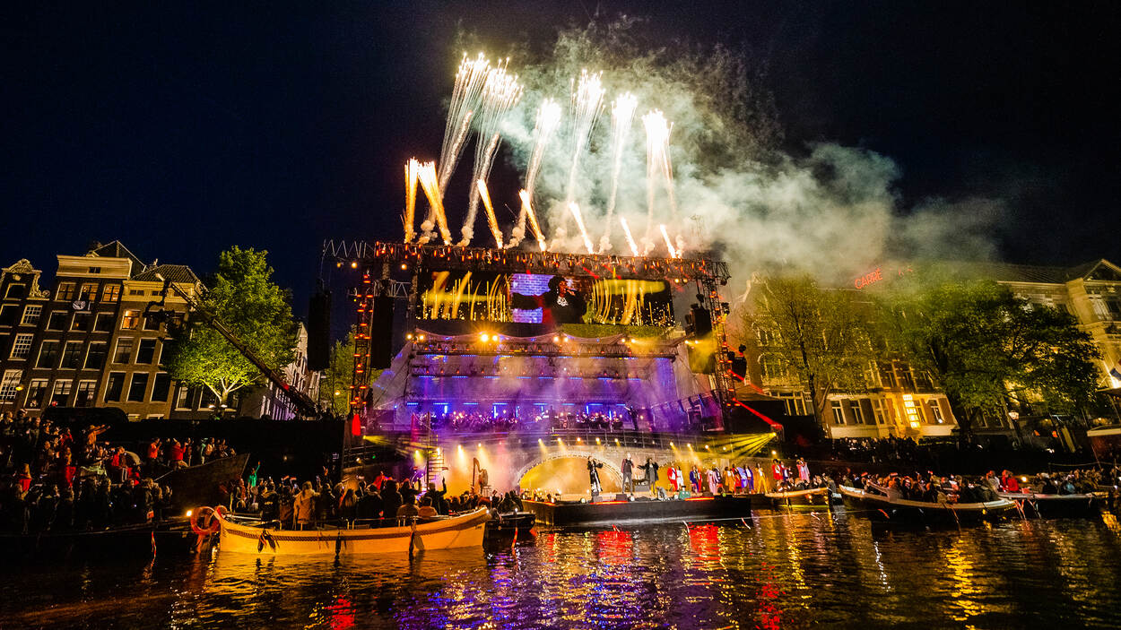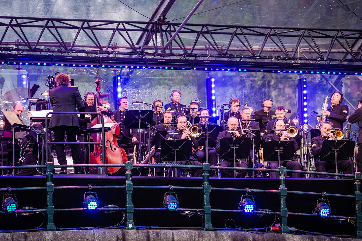 5 mei werd besloten met het Bevrijdingsconcert op de Amstel waarin een hoofdrol voor het Orkest van de Koninklijke Luchtmacht was ingeruimd. In aanwezigheid van Zijne Majesteit de Koning en Hare Majesteit de Koningin. Foto: Martijn Beekman