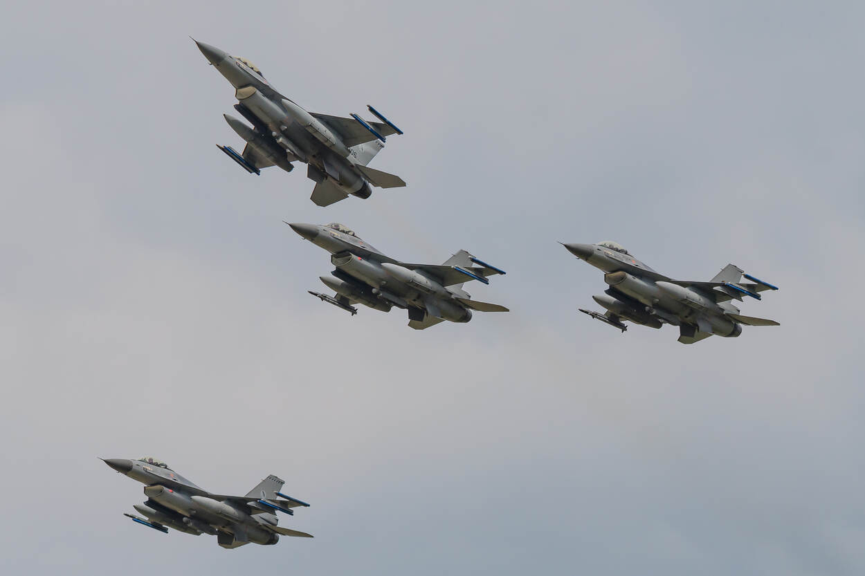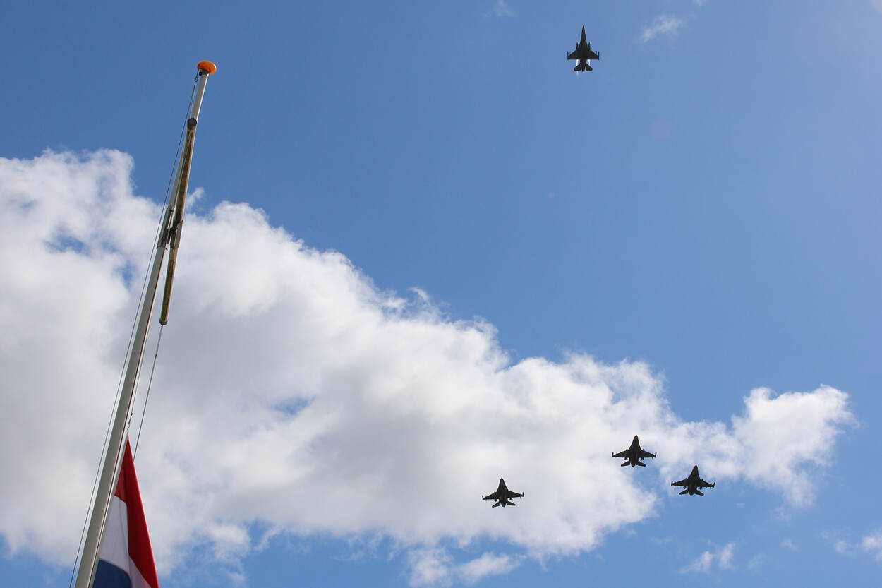F-16’s van Vliegbasis Leeuwarden verzorgden een missing man-formatie. Foto: John van Benten