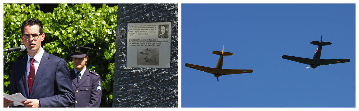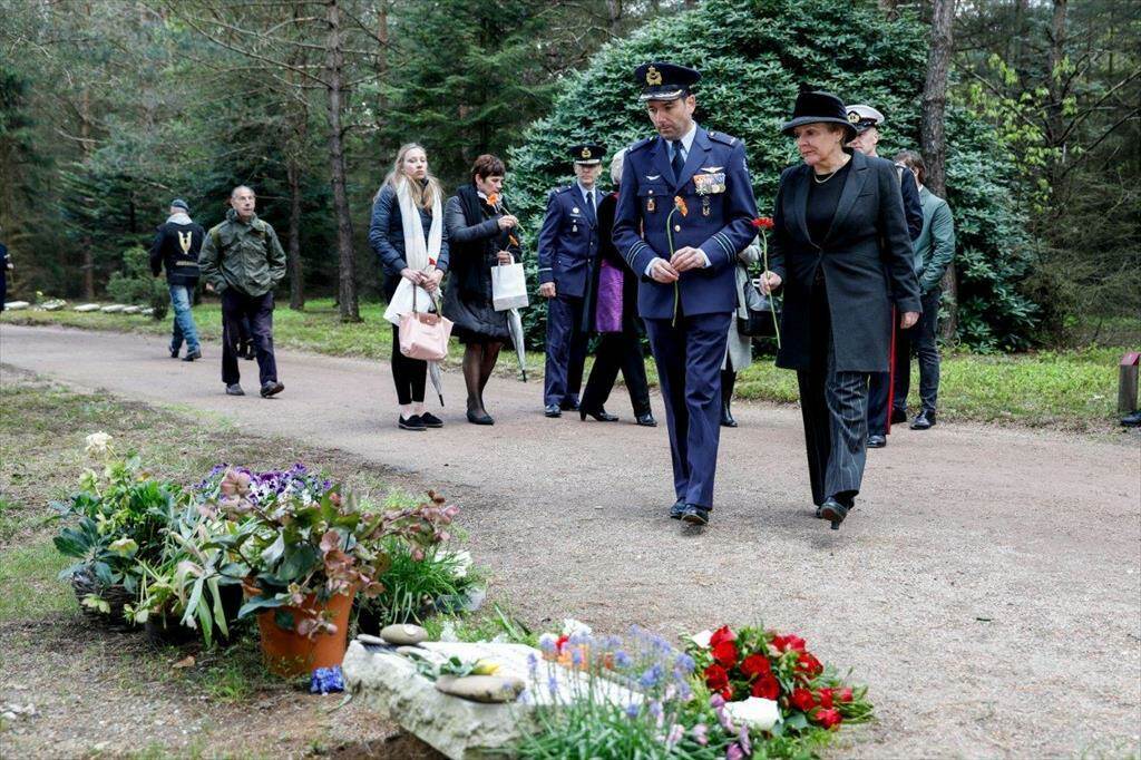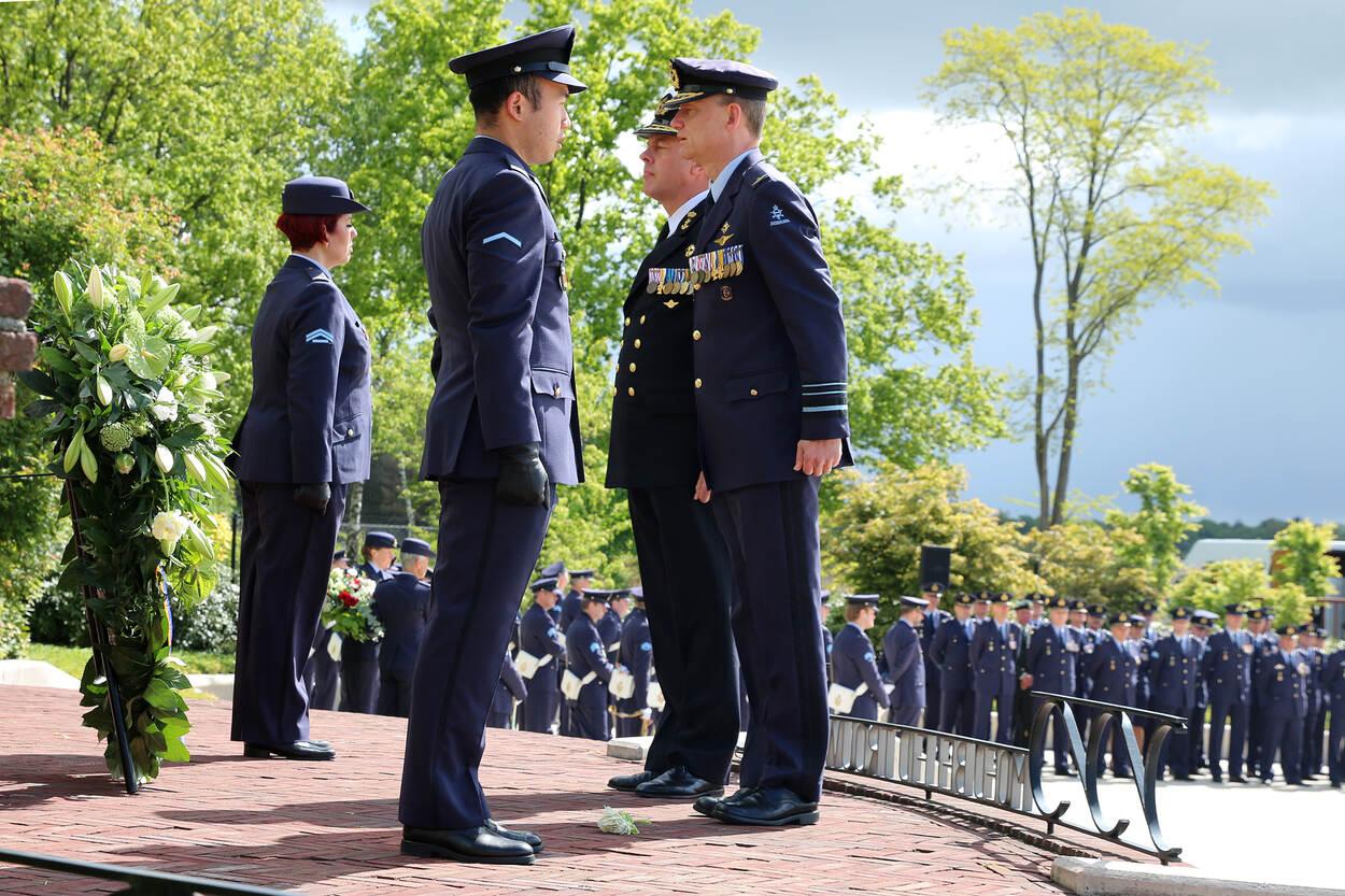 Hier legde de Commandant Luchtstrijdkrachten luitenant-generaal Dennis Luyt een krans samen met Commandant der Strijdkrachten luitenant-admiraal Rob Bauer. Ook Ridder Militaire Willems-Orde reservemajoor Roy de Ruiter was aanwezig.