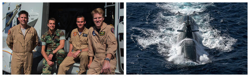 De NH90 is uitgerust met een HELRAS sonar die primair gebruikt wordt in het opsporen van onderzeeboten. De sonar kan wel honderden meters diep om de onderzeeboot op elke diepte te kunnen detecteren. Daarnaast maakt de NH90 gebruik van haar geavanceerde zoekradar om het wateroppervlak af te speuren naar periscopen. Dit is een oefening, maar in delen van de Middellandse Zee is onderzeebootdreiging reëel. Foto’s: 860 Squadron