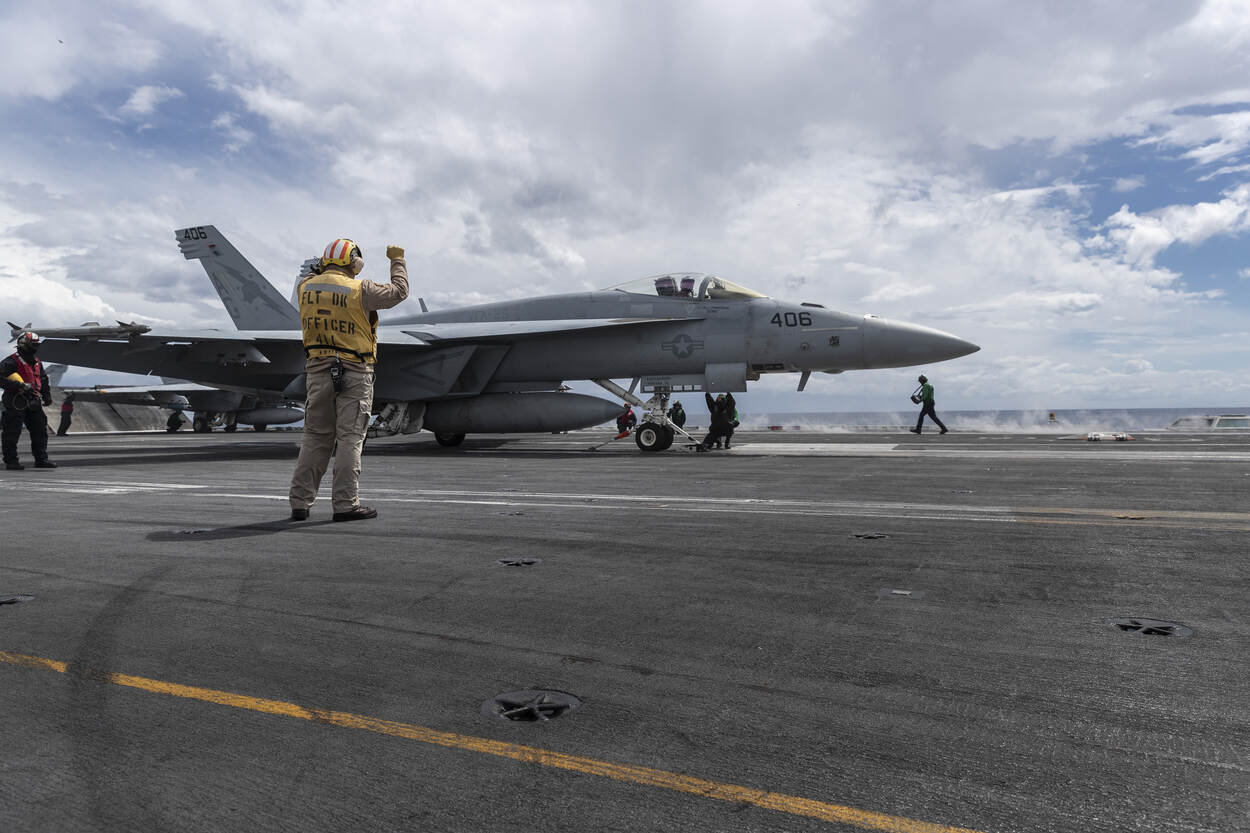 Zien hoe een F/A-18 Hornet van boord wordt geschoten? Bekijk dan deze carrousel.