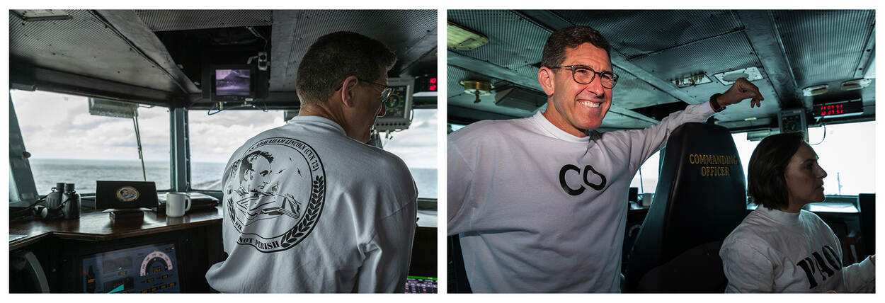 Het kantoor van captain Browne, zelf voormalig F-18 vlieger, lijkt zoveel mogelijk op dat van de 16e president van de Verenigde Staten. Dat was hij van 4 maart 1861 tot en met 15 april 1865 toen hij werd vermoord. Overal op shirts en baseball caps is zijn – voor Amerikanen – beroemde uitspraak te zien: shall not perish (zal niet vergaan). Dat sprak Lincoln uit in 1863 bij de begrafenis van bijna 8.000 omgekomen (noordelijke) militairen bij de slag om Gettysburg. Maar tijdens vliegoperaties, en dat zijn er veel, is de captain standaard te vinden in zijn speciale stoel op de brug, met uitzicht over het gehele vliegdek.