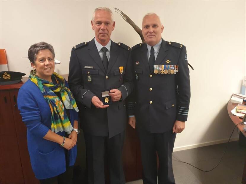 Adjudant Gert-Jan Geleijns ontving op 8 oktober de waarderingsspeld Koninklijke Luchtmacht voor zijn ‘bijzondere toewijding en loffelijk optreden’. Hij ontving deze speld, met nummer 100, uit handen van Commandant Vliegbasis Woensdrecht kolonel Ben Kamstra. Daarnaast werd de adjudant ook nog verrast met zijn gouden medaille.