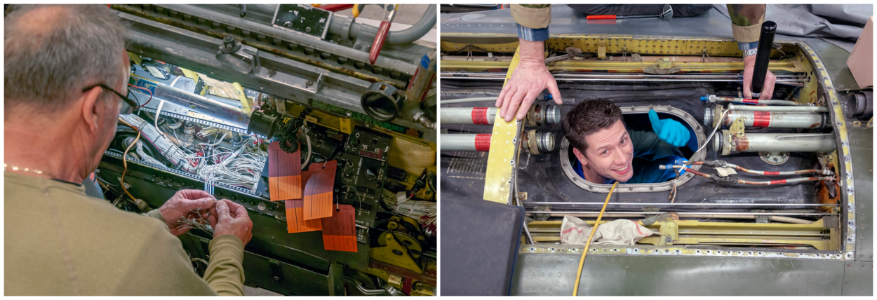 Klein probleem: een paar weken voordat D-8114 van Soesterberg naar Volkel komt, is een aantal kabelbomen doorgeknipt in plaats van losgemaakt zoals het hoort. “Daarna zijn we 3 jaar lang bezig geweest ieder draadje uit die kabelbomen weer op de juiste manier te bevestigen”, zegt Van den Boomen over het monnikenwerk. Dat is gelukt en ook alle andere werkzaamheden aan de kist vorderen, zodat-ie straks technisch 100 procent in orde is om te kunnen vliegen. Onderdelen zijn er genoeg voor de komende jaren. De oude Duitse Hangar waarin de HVV haar onderkomen vindt, puilt nog net niet uit, maar is zeer goed gevuld. En alles keurig geadministreerd en gefotografeerd.