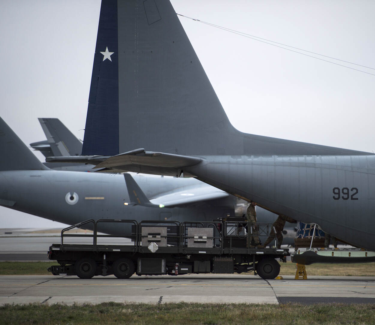 Internationaal lijntje met een KC-130 uit Chili, C-17 uit de Verenigde Arabische Emiraten, Nederlandse KDC-10 en Australische C-17.