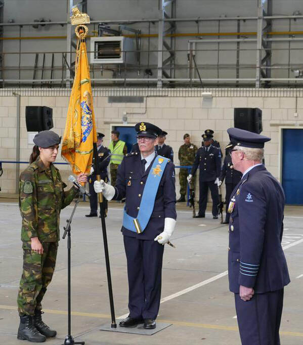Door het afleggen van de eed of belofte op het vaandel van de Koninklijke Luchtmacht, bevestigen militairen dat ze zich bewust zijn van hun bijzondere positie in de samenleving. De eed en belofte bestaat uit drie delen: trouw aan de koning, gehoorzaamheid aan de wetten en onderwerping aan de krijgstucht. Ze worden hiermee verbonden aan de grondwet en het volk. Met de eed of belofte bevestigt en getuigt een militair van oprechte wil om hetgeen dat hij of zij vrijwillig op zich heeft genomen ook daadwerkelijk uit te voeren en deze verantwoordelijkheid ook echt te aanvaren. Foto’s: KLu