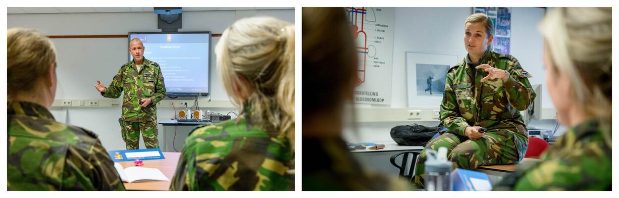 Het mooie van de cursus is dat-ie openstaat voor alle medische niveaus. Doorgewinterde en beginnende artsen, verpleegkundigen en ziekenverzorgers zitten naast elkaar. Vakbroeders voor de klas en in de klas. Care under fire. Skills, drills, tips en trucs vliegen over tafel. Vermeltfoort: “Binnen de krijgsmacht kent ‘OSEG KLu’ geen gelijke. En dat is al 10 jaar zo.”