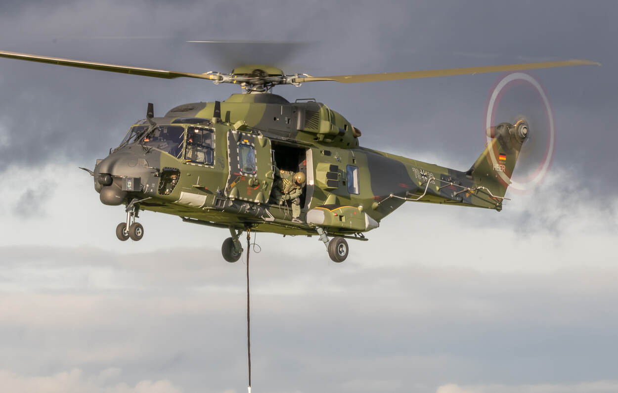 Eind november werkten 11 Luchtmobiele Brigade en het Defensie helikopter Commando samen in de oefening Slingery. Die vond plaats vanaf het Militair Luchtvaartterrein Deelen en op de Ginkelse en Eder Heide. Het 298 Squadron leverde 2 Chinooks en het 300 Squadron 1 Cougar. De helikopters kregen uit Duitsland ondersteuning van 2 NH90’s en ‘riggers’ die hun Nederlandse collega’s van 11 luchtmobiel ondersteunden. Die laatste verplaatsten ladingen voornamelijk met netten. Op de Ginkelse Heide was ook een Forward Refuelling Point ingericht met is 42.000 liter brandstof, waar maximaal 4 helikopters tegelijkertijd konden tanken. Foto’s: Ludo Mennes