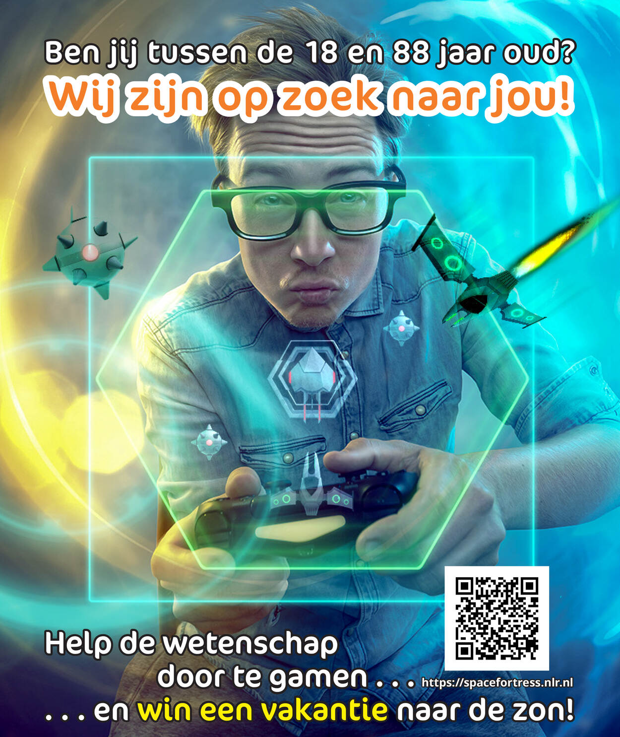 Het NLR is hét onderzoeksinstituut voor lucht- en ruimtevaart. Het NLR wil de resultaten vertalen naar de praktijk, zodat professionals in complexe, risicovolle omgevingen adequaat kunnen handelen wanneer nodig, ook als ze die vaardigheid al een tijd niet meer hebben uitgevoerd. Een ander voordeel van een optimale trainingsfrequentie is dat het leidt tot minder overbodige trainingen voor professionals die nog op niveau zijn. Help de wetenschap door te gamen! In dit onderzoek leert men een complex spel, en wordt later getest op hoe goed ze dit spel nog kunnen spelen. Op deze manier probeert het NLR te voorspellen hoe vaak professionals in risicovolle, complexe omgevingen opnieuw een training nodig hebben. Nog niet overtuigd? Je kan een vakantie winnen! Doe mee op: https://spacefortress.nlr.nl.