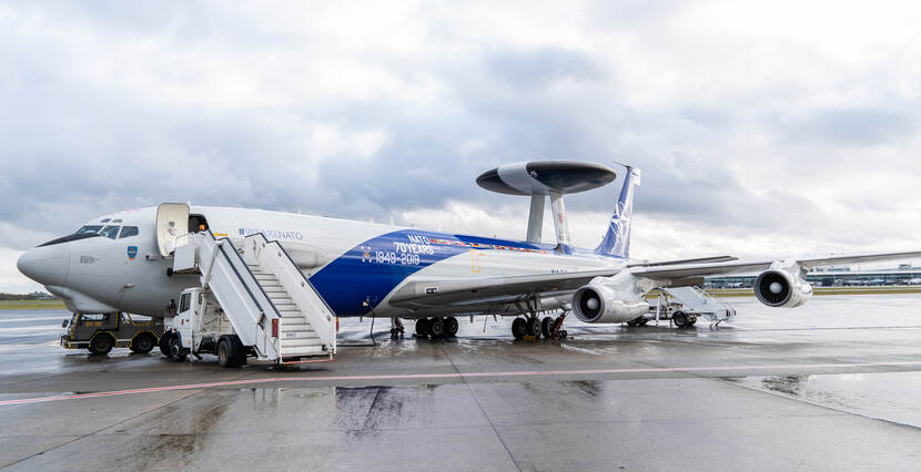 Het NAVO-contract met Boeing zal de Airborne Early Warning and Control Stations, kortweg AWACS’en moderniseren, zodat ze de missies van het bondgenootschap tot 2035 kunnen blijven ondersteunen. Met de investering krijgen de 14 resterende E-3’s geavanceerde nieuwe communicatie- en netwerkmiddelen. De 16 NAVO-bondgenoten financieren deze modernisering. Bedrijven uit Europa en Noord-Amerika werken bij de modernisering samen. Stoltenberg onderstreept dat de NAVO zich blijft aanpassen en al van plan is de AWACS in 2035 te vervangen. Bij de modernisering van de E-3’s worden de motoren niet aangepast. Foto: NAVO