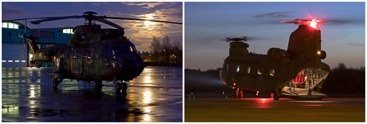 Omdat het later donker is, wordt de vliegtijd van het Defensie Helikopter Commando nu verlengd van 23:00 uur tot middernacht. De toestellen maken gebruik van de diverse oefen- en laagvlieggebieden waaronder Vliegbasis Deelen bij Arnhem. Met behulp van de Night Vision Goggles beoefenen ze onder meer het navigeren en vliegen op lage hoogte. Op Deelen werken naast de helikopterbemanningen ook de luchtverkeersleiders aan hun kwalificaties.