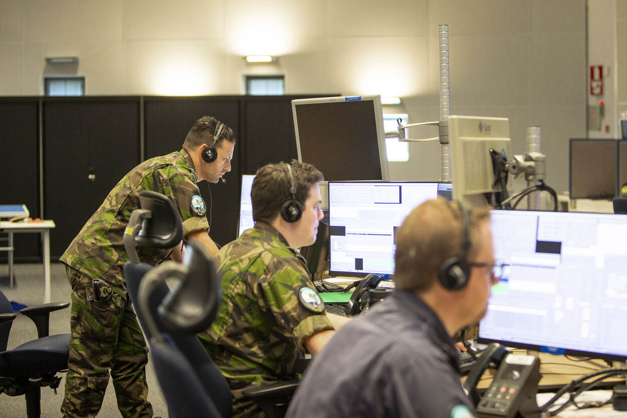 Een luchtgevechtsoperatie is teamwork bij uitstek. Goede air surveillance, ofwel luchtbeeldopbouw, is daarbij onmisbaar. Op basis van die informatie worden alle tactische beslissingen gemaakt. “Bij oefeningen als deze zie je dan in 1 oogopslag waar je eigen troepen zijn en waar de vijand is,” vertelt kapitein Joost, gevechtsleider en track production officer. Samen met zijn collega’s zorgt hij ervoor dat de radars een optimaal luchtbeeld leveren. Daarop zoeken ze het luchtruim 24/7 af naar vliegtuigen, identificeren deze en blijven ze volgen zolang nodig. Daarvoor maakt de gevechtsleiding op grote schaal gebruik van geavanceerde radar-, computer-, en communicatiesystemen.