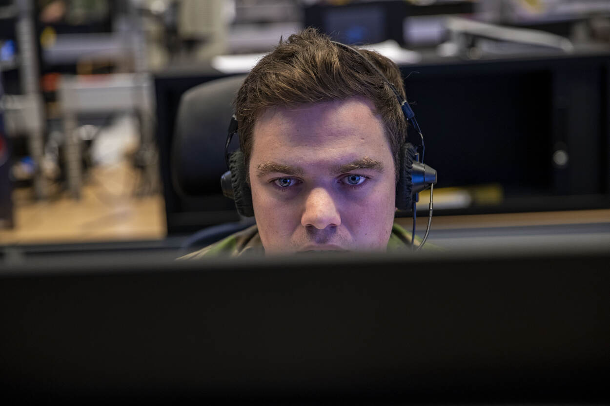 Tientallen vliegtuigen scheren op de radarbeelden voorbij. Het visuele geweld wordt aangevuld met een continue stroom aan stemmen door de koptelefoon. Menigeen zou gierend gek worden van de stortvloed aan informatie. Toch is het de kakafonie waarin Fighter Controller tweede luitenant Mark zich thuis voelt. “Het lijkt complete chaos, maar in mijn hoofd heb ik alles op een rijtje.”