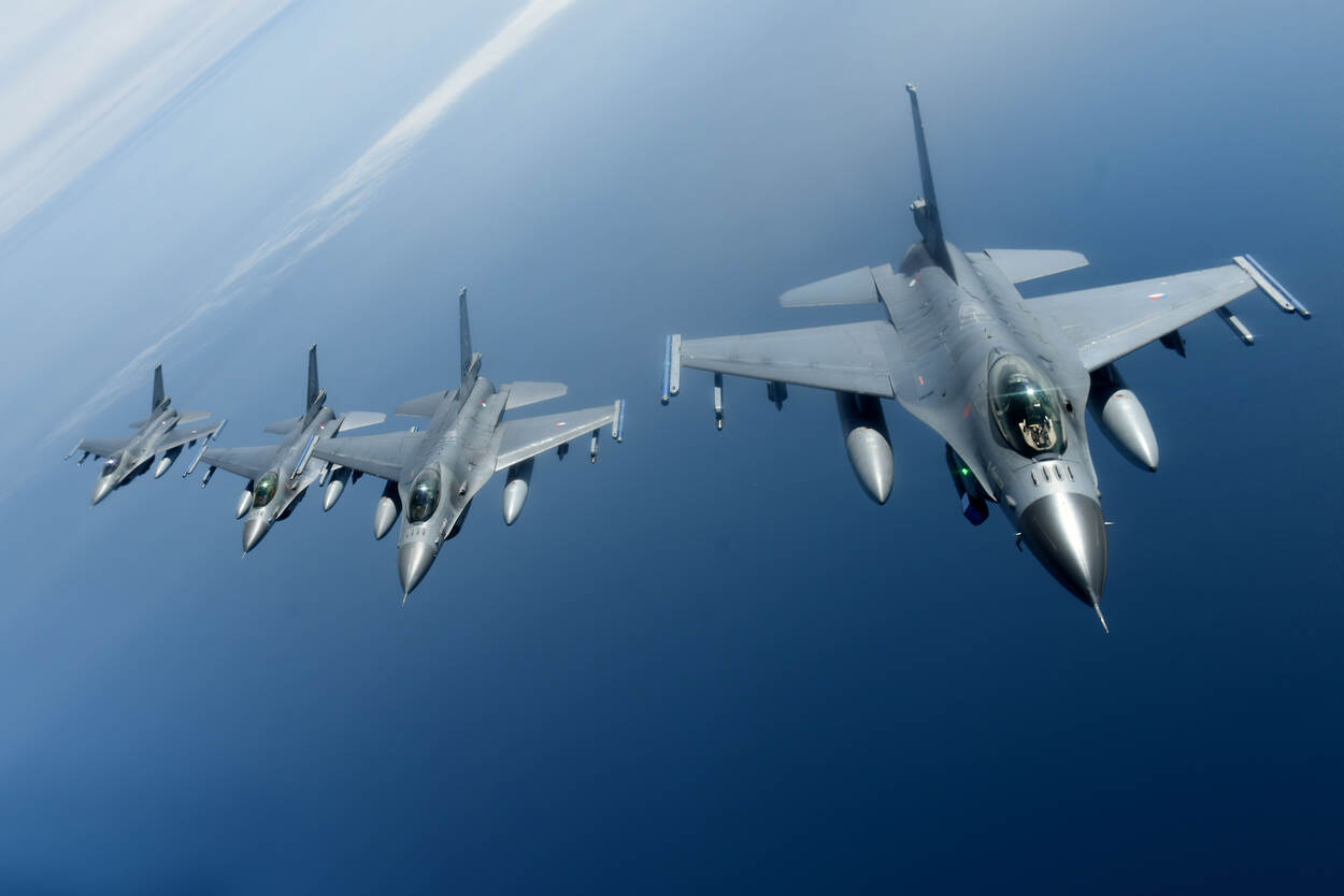 1 van de 14 deelnemende F-16’s. Andere gevechtspartners waren een Nederlandse F-35, 12 Amerikaanse F-15’s en een Amerikaans KC-135 tankvliegtuig.