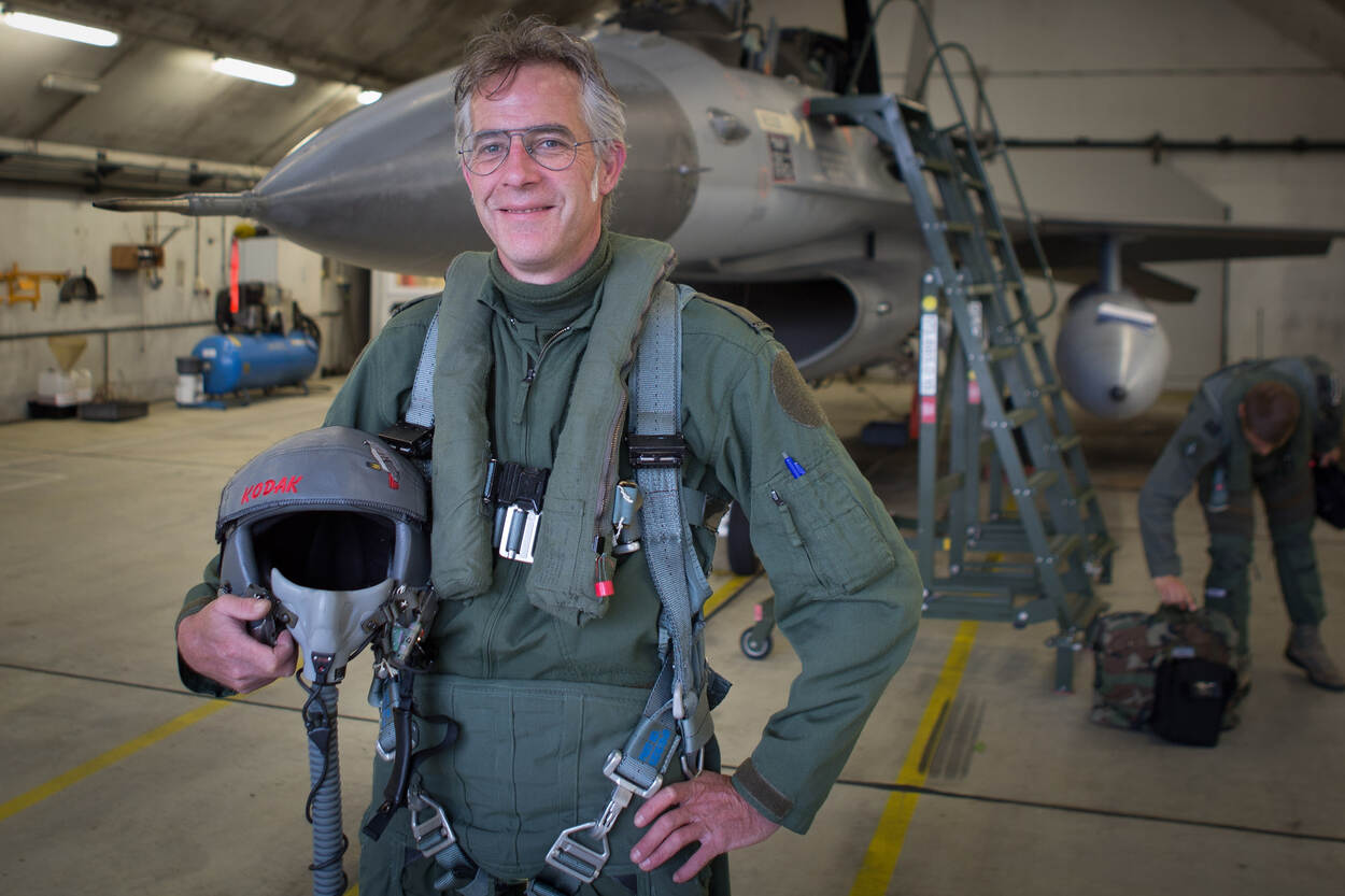 Toen hij in 1991 de luchtmacht binnenwandelde, wist Arnoud precies wat hij wilde: luchtfotograaf worden en niets anders. Tot op de dag van vandaag kan hij zich geen mooier beroep voorstellen. De spanning voorafgaande aan een opdracht, het telkens opzoeken van wat veilig mogelijk is en vooral de uitdaging die iedere fotomissie inhoudt én natuurlijk de sensatie van het vliegen: hij is eraan verslaafd. Of hij tijdens een opdracht weleens bang is geweest? Echt bang gaat volgens hem iets te ver. Maar toen in 2016 boven de Noordzee de F-16 waarin hij zat motorstoring kreeg, dacht hij wel even aan een nat pak. “Ik merkte vooral dat ik terugviel op mijn drills: de cockpitruit gaat er zo af, de schietstoel wordt geactiveerd en daarna land ik op het water en vouw ik de dinghy (kleine rubberboot, red.) uit. Dat alles spookte als een bliksemschicht door m’n hoofd; eerlijk gezegd kreeg ik het toen wel even warm. Gelukkig vloog ik met een ervaren vlieger die alles snel weer onder controle had. Luchtfotograaf zijn, is fantastisch. Maar heelhuids met beide voeten weer op de grond staan, is minstens net zo leuk.”